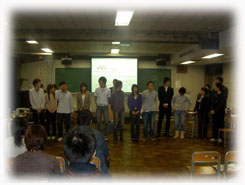 | 2004年11月23日、小野ゼミ史上初の熱い三田祭企画が繰り広げられました。運営委員長は若き親父顔がイカした大隅、司会は渋い声が素敵な加治が務めました。 ビラ配りや会場設営といった準備をゼミ員みんなでしっかり行ったおかげで、当日は会場一杯に観客の皆さんが集まることとなりました。 ディベート自体も、各ゼミのしっかりとしたプレゼン+ディスカッションで大いに盛況のうちに終了となりました。 この企画は運営委員長大隅の努力の結晶とも言えるものでした。 司会として、一ゼミ生として、このような素晴らしい企画をしてくれた大隅に感謝します。 本当にお疲れ様でした。(加治) スペシャルサンクス 〜参加ゼミ〜 〜審査員の方々〜 立教大学 守口ゼミ様 桂 幸一郎様 学習院大学 上田ゼミ様 中田 敦様 慶應義塾大学 濱岡ゼミ様 平野 亜矢様 そして、小野晃典先生 |