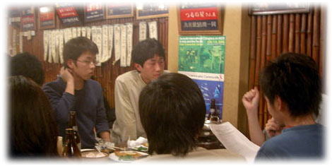 | 三田祭後に行われた定例コンパは、三田論の打ち上げをやっている4期生やそれに負けない勢いの3期生といった感じで大変盛り上がりました。 初コンパ以来となる「つるのや」を夜遅くまで満喫しました。 |
