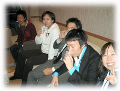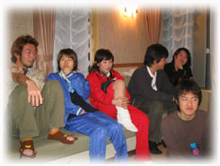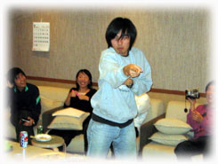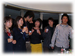 | 2005年度も、もう終わりに近づいてきた今日。先生宅のパーティルームで納会が行われました。 4期の企画によるゲームやメッセージ、出し物などなど、どうだったでしょうか? 我々4期生は、先生そして3期の方々との残り少ない時間を名残惜しみながら、今日も夜を徹して語ったのでした。 |