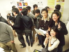 11月23日、三田祭の最終日に打ち上げ兼、定例コンパが手羽先で有名な「世界の山ちゃん」で行われました。 論文を展示していたブースには多くの2年生や一般の方にご来場いただくことができ、小野ゼミ生は達成感に満ち溢れていました。 今回は森本さん(3期)、河野さん、松山さん、鷲見さん、田中さん(5期)にもご参加いただいたこともあり、定例コンパはいつも以上の盛り上がりを見せました。 OBの方には、iPhoneのスゴさから昨今の経済事情まで幅広いお話を伺うことができ、これから社会に出る6期生や就活を控えた7期生はとても勉強になりました。 かなりの盛り上がりを見せた今回の打ち上げはこうして幕を下ろしました。 (横川)