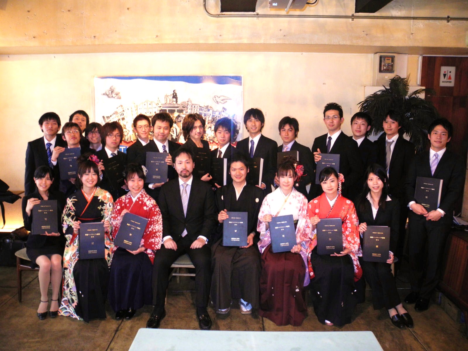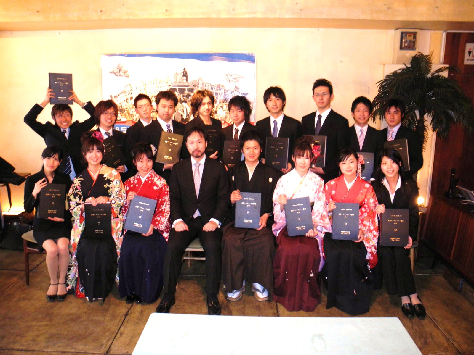 この日は、早い時間帯からの集合だったにもかかわらず、菊盛、小野、澤井、白岩の女性陣と氏田は袴姿の出で立ちで会に華を添えてくれました。 先生も謝恩会で7期生から差し上げたネクタイを締めてきて下さり嬉しく思いました。 そして、やっと先生に完成版の卒業論文集をお渡しすることができ、7期生全員の手にも行き渡りました。 編集委員長のさやかはお疲れさまです。 これで7期生が、現役中にすべきことはすべて終わりました。 とはいえ、なんというか、最後まで7期らしい終わり方だったような気がします。 謝恩会に続きもう一度流した卒業ビデオを見ても、結局誰も泣かないし。 確かに僕自身もこれが最後、という気があまりしなかったのですが、他のみんなはどうだったのでしょうか。 ふと気が向いたので今一度、2年間の三田での生活を思い起こしてみます。 2年前の入ゼミの次の日から通い続けたグル学も。 6期生と共に過ごした527教室も。 ビールといいちこと熱燗ぐらいしか飲むものがないし、チャーハンの出てくるタイミングがいつも遅いつるのやも。 金曜日のお昼には先生がいた山食も。 グル学が空いてない時にはみんなでたまっていた食堂も。 本ゼミ前にはいつも印刷に追われていたITCも。 話し合いが行き詰った時には散歩に行った生協も。 しゅーちゃんときみしょーがいた喫煙所も。 その横の自動販売機で買った缶コーヒーを飲みながら座った中庭のベンチも。 最後まで完成することのなかった南校舎も。 臨時の話し合いの時には空いてる教室を探した院棟も。 いつも緊張しながら資料を片手に先生に会いに行った談話室も。 立地は悪かったけど4日間売りまくったチゲ&アスカも。 今はもうなくなった法科の自習室も。 値段の割に美味しかったとと丼も。 氏田としゅーちゃんが取っ組み合いをして、日浦が記憶をなくした山ちゃんも。 サービスは悪いけど結局何回も何回も行く三田製も。 さやかと澤井は小野ゼミに入ってから初めて食べたらしい松屋もすき屋も。 なぜかいつも誰かが酔いつぶれる串特急も。 ケースが終わったらどっかの班は絶対に打ち上げに使っていたちょい呑みも。 おっちゃんが優しくて、ときどき杏仁豆腐をサービスしてくれる上海亭も。 味が濃すぎて最後には飽きてくる慶珍楼も。 三田線組とJR組が別れる、帰りの田町の階段も。 全部、全部、ぜんぶ。 思い返すことはできても、もう二度とは帰ってこない、7期で過ごした 「いつも」 の日常なわけで。 そんなことを考えるとやっぱり涙が出そうにもなります。小野先生、院生の方々、6期をはじめとした先輩方に、今はまだ唯一の後輩である8期生、2年間お世話になった全ての方々に対して感謝の気持ちが込み上げてきます。 しかし4月がすぐ目の前に迫っていることを思うと、もう感傷に浸っている場合ではないのでしょう。 既に勤務している小野杏奈も、金沢に配属の決まった横川もいます。 これからはまたそれぞれが別の方角を向いて、自分の道を歩いていきます。 小野ゼミでは経験し得なかった更なる困難にぶつかることもあるかもしれません。 それでも再び会った時には、離れていた時間が何事もなかったように 「いつも」 通りに飲んで話せそうな気がするのが、7期だと思います。 「最強のゼミ」 で鍛えられたみんなが、新天地で今以上に活躍し、また元気で再会できることを祈りつつ最後のレポートを締めくくります。(白石) 今回の非公式卒業式の会費10万円と同額を、慶應義塾基金室を通じて、被災地救援のために寄付させていただきました。 東北地方太平洋沖地震により亡くなられた方々のご冥福をお祈り申し上げます。 そして併せて、被災された皆様、そのご家族の方々に対しまして、心よりお見舞いを申し上げるとともに、一日も早い復旧復興をお祈り申し上げます。 |