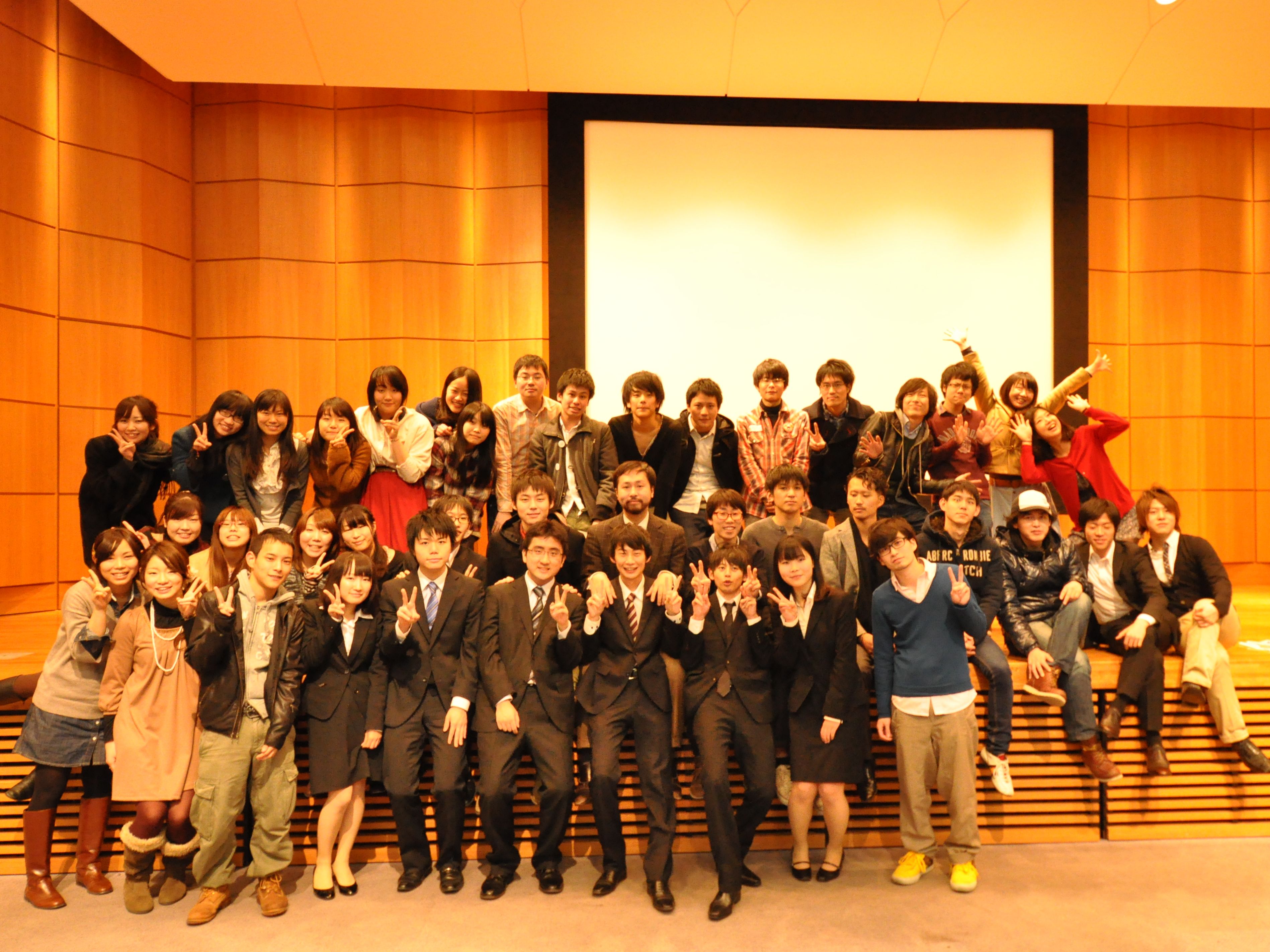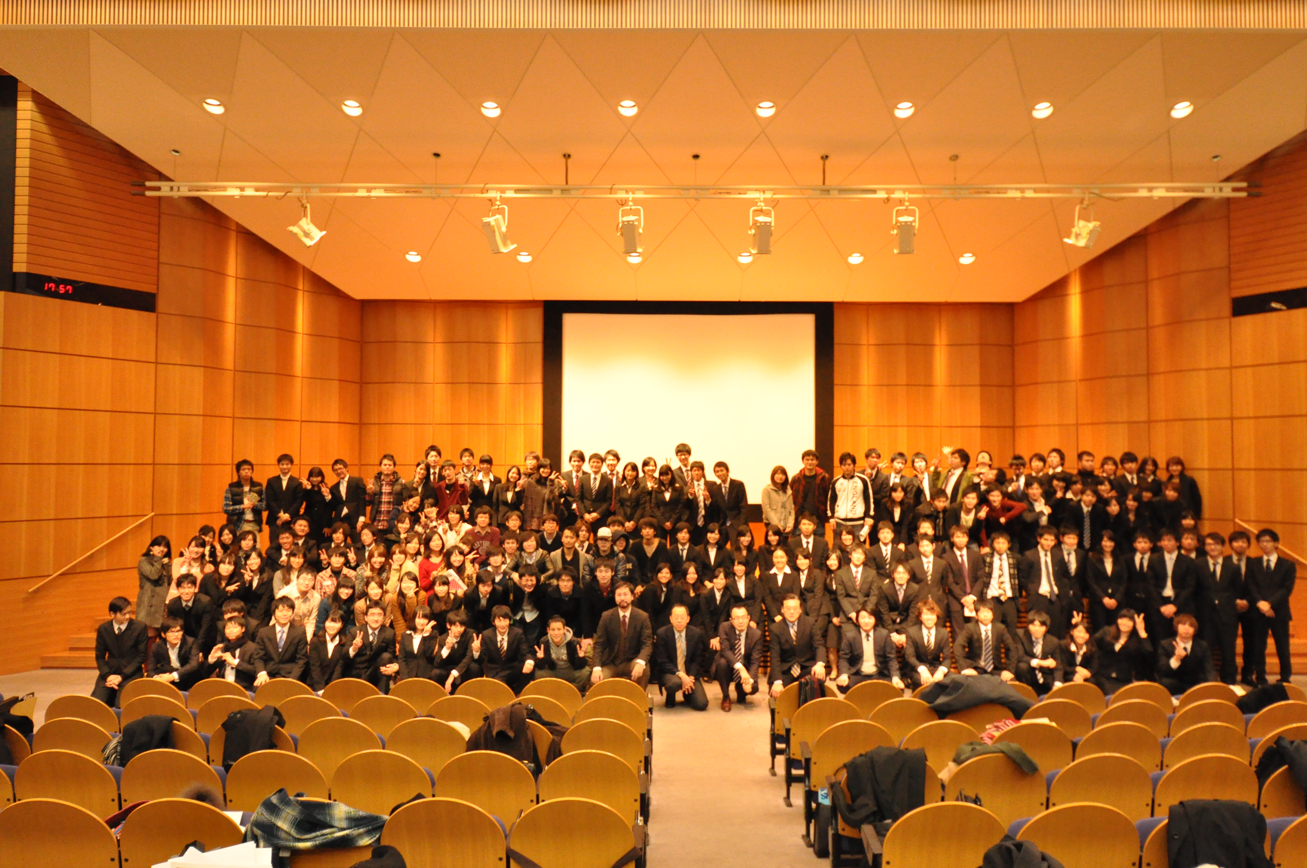西校舎ホール。 いわずもがな、マケ論の終着点である。 この場所に立つために、全員で何度も何度も発表の練習をした。 マケ論メンバーの中でも特に説明下手、発表下手な私はいつまでたっても上達せず、皆を困らせたと思う。 しかし、マケ論メンバー、先輩方や同期、小野先生はそんな私を見捨てることなく、熱心にアドバイスして下さった。 小野先生、千葉さん、荻野さんにいたっては、クリスマスを返上して私たちの発表練習に付き合って下さった。 本当に頭があがりません。 クリスマスを越えてから、発表の質も軌道に乗り始め、クリスマス後は発表練習が楽しくてしょうがなかった。 暉君の元気な声。 みっこの「バラバラ」。 大原君の流暢な説明。 島崎の異様に丁寧な発表。 そしてがーすーの聴衆をぐっと引き付けるしゃべり。 六人揃えばどんなゼミより凄い発表ができる! その確信の下、発表当日を迎えた。 正直、緊張のあまり記憶が殆どないが、20分の発表の間、ずっと楽しかったことだけは覚えている。