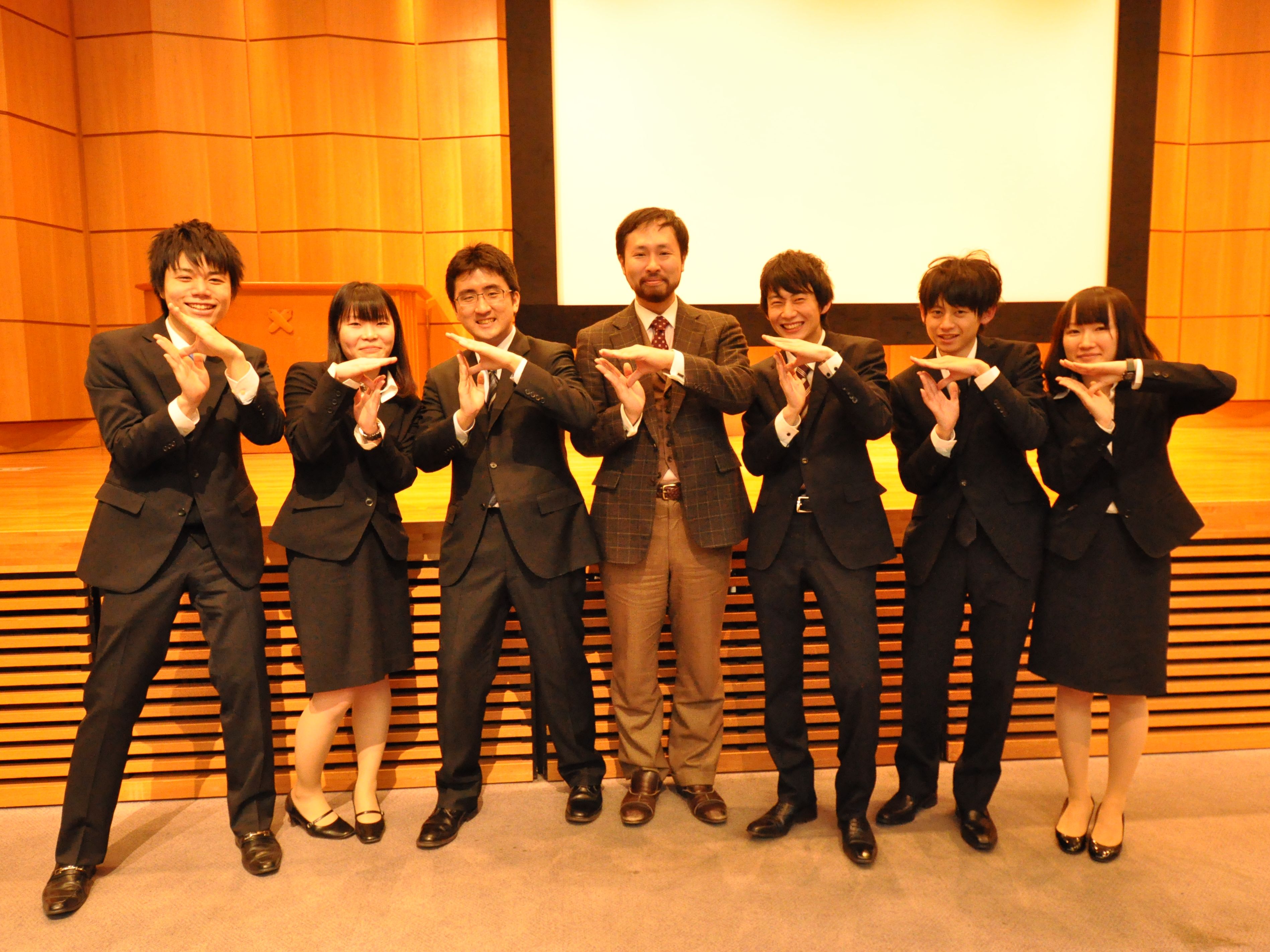 発表の当日のこと。 みんなの前では強がっていたが、実は直前まで緊張していた。 流暢に話すのがあまり得意ではない私は、それでも元気だけは他ゼミに絶対に負けないように心に決めていた。 そしていざ発表が始まる。 ステージの中央に行き、この半年の想いをこめて来場者に挨拶をする。 この瞬間、会場にいた全員が顔を上げ、こちらを見てくれたことを覚えている。 会場全体を取り込むことができた。 そう思うと、何故か緊張が一気にほどけた。 そこからは本当に楽しくプレゼンすることができた。 その後もマケ論チーム一人ひとりがベストなプレゼンを続けていった。 そして、発表が終わった。 この時、皆が本当にいい顔をしていた。 全てを出し切った、そんな顔だ。 この瞬間だけでも今までやってきた甲斐があった。 そう思った。