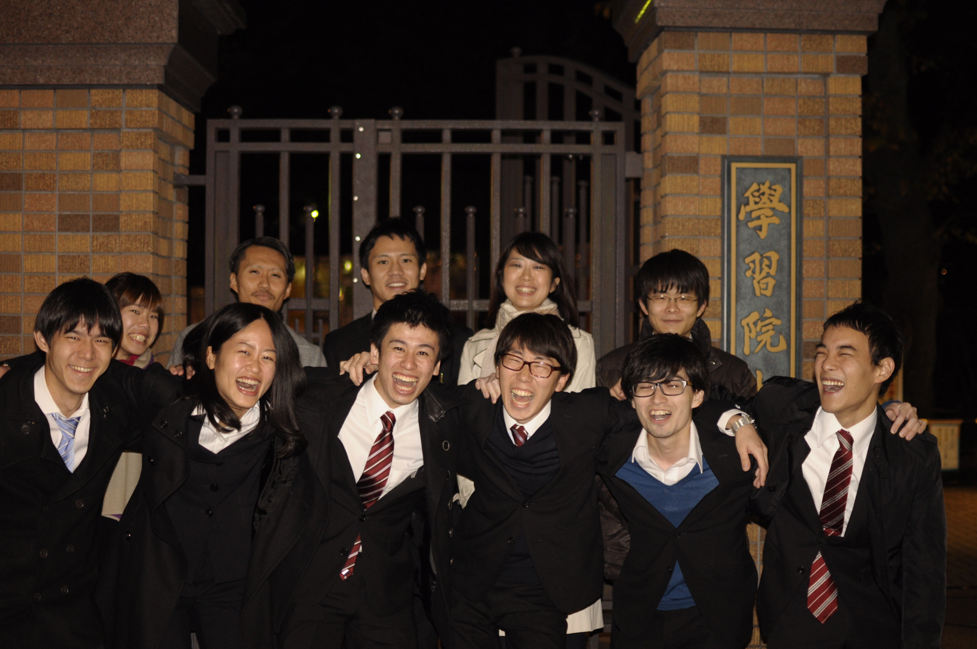 まさか徹夜で当日をむかえるだなんて、誰が予想したであろうか。前日は矢上キャンパスでオールするかとか悩んだ挙句に、代表の家で練習オール。壁に向かって「みなさん、こんにちは!」と、夜中に何やってんだか。そして、迎えた朝。12月10日がこんなにも早くやってくるとは、不思議な感じである。再集合した十ゼミチームは、それぞれ電車を1駅くらいずつ寝過ごしたものの、集合時間には間に合った。学習院大学での短くも長い一日が始まった。 関東十ゼミ討論会は三回戦を勝ち抜いたものが覇者となる大会である。そして一回戦が始まろうとしている時によぎったのは、5チーム中1チームしか二回戦には進めないこと。さらに、一回戦の同じグループに中央大学久保ゼミという難敵がいた。次に進めるか不安だったが、一回戦が始まって再認識したことがある。一番の難敵は“自分たちが噛み倒すこと”だった。 休憩をはさみ、会場が変わり、一回戦を勝ち抜いたチームがどこなのか、その発表を待つのに気が気でなかった。その誰もが緊張に襲われているその瞬間、どの会場も「これ何て読むんですか?」といった会話がなされたに違いない。“はねもと班”だよ!バタバタと二回戦の準備と発表が終わった。一回戦とは違い、あっという間に終わった。そして二回戦も突破した。 44チーム300人のザワザワ感、後ろの方は見えない会場、実務家審査員の厳しい視線。そのどれもが、刺激的すぎて、うれしかった。本日三回目となる?木の「突然ですが、問題です!」、渡邉の「考察していきましょう!」、刎本の「バンダイ渾身のスルー戦略!」。他のどのチームより印象的なプレゼンをした自信があった。 そして最優秀賞と論文賞のダブル受賞が決まった瞬間、小野ゼミは祭りのような叫び方をした。実務家審査員の方の言葉を憶えている方はいるだろうか。「自分の役割をしっかり分かっているチームですね」。?木に始まり、渡邉がつなぎ、刎本がしめる。誰も欠けることなんて許されないし、許さない。よく言われる「3人だから大変だったでしょう?」という言葉にこう返してやりたい。「この3人だから強いんだ」と。 以前、ある先輩がこんなことを言っていた。「十ゼミチームは、どのチームよりも頭が弱い。でも、どのチームよりもガッツがある。頭の弱さをガッツがカバーできている」。最高の褒め言葉のように聞こえる。小野ゼミ生であること、十ゼミチームであることを心から誇りに思い、賞金の使い道に思いをはせるのであった。(刎本) |