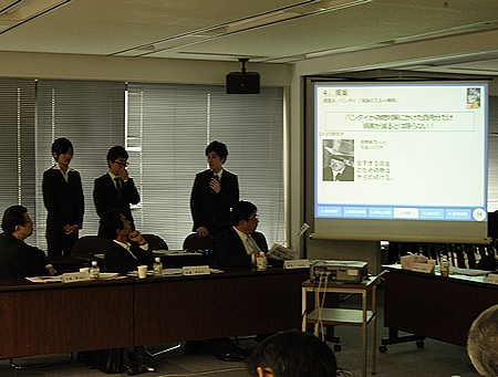 ・ 関東十ゼミ討論会とは ・ 小野ゼミにとっての十ゼミとは ・ 2011年度の参加ゼミ ・ 2011年度の小野ゼミの研究テーマ ・ 活動経過報告 ・ 関東十ゼミ討論会当日のスケジュール ・ 関東十ゼミ討論会当日の模様 ・ 慶應義塾商学会賞授賞式の模様 ・ 日本マーケティング協会理事会での研究報告の模様 ・ 研究を終えて (祝 関東十ゼミ討論会最優秀賞・優秀論文賞 ・ 慶應義塾商学会賞受賞!) |
