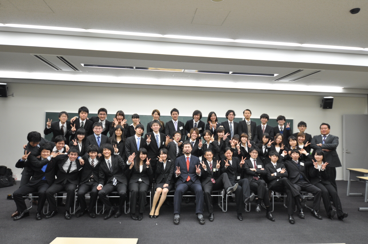 12月19日、4・5限に第2回オープンゼミが開催されました。 月曜日の4・5限に授業のある人が多いにもかかわらず、たくさんの2年生が参加してくれました! ありがとうございました!! さてはて、今回のオープンゼミの前半では2年生のみなさんに小野ゼミの活動をより “リアル” に感じてもらうべく、いくつかのグループに分かれて 「ケースメソッド」 を体験してもらいました。 お題は 「大正製薬が新しいドリンク剤を販売するに当たって、どのようなブランド戦略をとるべきか?」。 それぞれのグループの机の上には、ケースを解くために使用するデータが掲載された資料やプリント類が用意されていた・・・だけでなく! なんと、のりやはさみ、色鉛筆まで!!(・□・;) そうなんですね! マーケティングを学ぶ小野ゼミらしく、新製品のパッケージも考えてもらいました。 通常ゼミ生でも1週間かけて取り組むものを、50分という短い時間で、しかも質の高いものを作り上げてくれた2年生にはただただ感心でした! 2年生のみなさんお疲れさまでした。