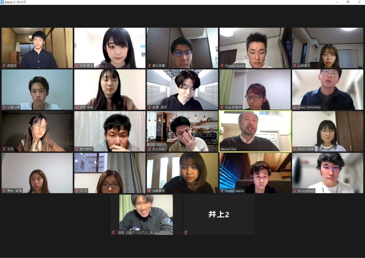 2021年4月9日、今年度初回のゼミが実施された。 第19期の8人と第18期の先輩方、院生の方々、そして小野先生の全員が、初めて揃う場となった。