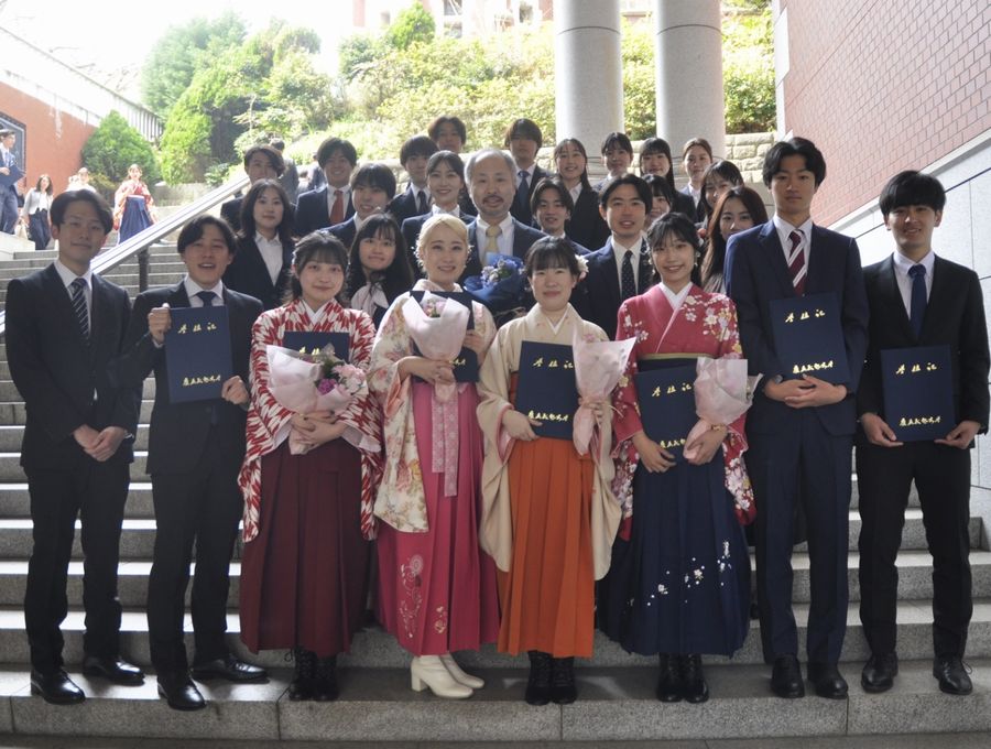 | 3月24日、21期生は、卒業の日を迎えました。写真撮影には、小野先生をはじめ、院生の方々、22期生、そして、23期生にもお越しいただきました。おかげさまで、とても晴れやかな気持ちで卒業することができました。みんなありがとう!!! 女性陣は、お綺麗な袴姿で、とても輝いて見えましたね。このまま社会人になっても一際輝く存在になってもらいたいものです。男性陣は、(スーツではありますが)普段と大して変わらない感じでした。引き続き変わらず頑張ろうという意味が込められていそうです。卒業の日を迎え、身に沁みて感じたことは、周りの人に支えられてこそ、自分は四年間の大学生活を終えることができたということです。親身になって指導し続けてくれた、小野先生、大学院生の皆さん、(20期生の先輩ももちろん!)本当にありがとうございました。そして、ついてきてくれた22期生も、ありがとう。これからは、23期生と一緒に、僕たちが引き継いできた火を灯し続けてください。それでは、またどこかで!小野ゼミに関わる全ての人が幸せでありますように。引き続き、各々抜かりなく。(國吉) |