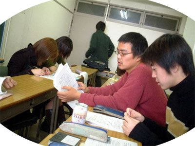 教室を借り切って、論文の最終段階の話し合い。この後、小野先生もいらっしゃるんです。