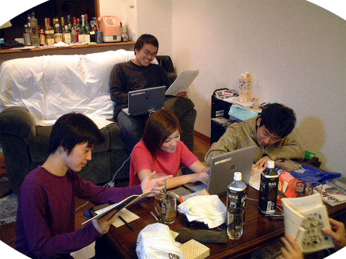 実は、この日は締め切り間近のため、先生の家で最終合宿です。 いつも、締め切り近くになると、こんな感じで先生の家で最終調整。 小野先生、いつもお言葉に甘えさせて頂いております!!