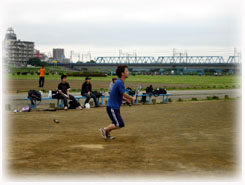 | 6月14日。 六郷土手において、ソフトボール大会決勝リーグが行われました。 今回は強豪桜川ゼミと対決。 ゼミ一丸となり闘いましたが、惜しくも敗戦。 負けましたが、攻守にファインプレーが出たりするなど、非常に盛り上がった大会になりました。 |