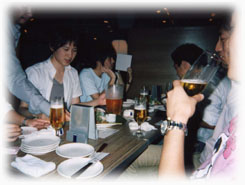 | 7月30日、渋谷において、夏の納会が行われました (やや写真の質が悪く、店内が暗い写真が多いですが、雰囲気もとってもよいお店でした)。 今回は社会人の先輩も多数出席し、前期を締めくくるに相応しい納会になったのではないかと思います。 例年、先生のお家で行っていたのですが、今回の会はそれに負けずに大変盛り上がった会になりました。 |