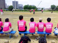 勝負は試合前から決まっていたのかもしれない。リーグで唯一、おそろいのチームTシャツに袖を通した気合と団結力が抜群の小野ゼミは、相手ゼミたちを圧倒。 応援に駆けつけてくださった先生は代打で大活躍! 普段はおしとやかを演じている女性陣もここぞとばかりに爆発し、見事決勝トーナメント進出を決めました。 練習ゼロでどこまで行けるか!? 運動不足で肉離れは起こさないか!? 2週間後の決勝トーナメントにも注目です!! (池谷)
