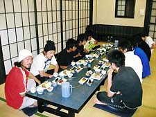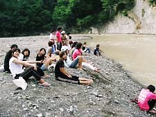 【3日目】 8:00〜9:00 朝食 10:00〜12:00 グランド企画(フットサルなど) 13:00〜14:30 昼食(炊き出し) 15:00〜17:30 川遊び 18:00〜19:00 夕食 19:00〜21:00 自由時間 21:00〜∞ コンパ 【4日目】 8:00〜9:00 朝食 10;00 出発@宮本荘 13:30 解散@池袋 合宿後半は、遊びに遊びました。 3日目は、朝からみんなでグラウンドに出かけ、サッカーやピンポンリレーを楽しみました。 そして、午後からは川遊び!! あまりの激流に初めは及び腰であった私たちではありましたが、一度川に飛び込んでしまうと、その開放感にメロメロになってしまいました。 みんな久しぶりに太陽を浴びて大はしゃぎの1日でした。 クタクタになりつつ宿に帰り、おいしく夕食をいただいた後は、待ちに待ったコンパ!! コンパ担当チームによるレクリエーションもあり、お酒も入って、大盛り上がりの一夜でした。 (近澤) |