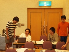 【1日目】 長い夏休みも残すところあとわずか。 そんな9月10日、小野ゼミ生は筑波での合宿に向けて出発しました。 今回の合宿には2名のOB with ご婚約者の方にも参加していただきました。 4年生は卒論、3年生は三田祭論文の中間発表を行うこの合宿、発表の準備を頑張り過ぎたのか少々お疲れの人もいたようで。 しかし、ゼミ生が一堂に会するのは久々ということもあり、筑波へ向かうバスはとても盛り上がっていました。 約2時間のバスの旅を終え、宿泊先のつくばグランドホテルに到着したのは、午後1時半でした。 到着後、3年生を待ち受けていたのは夏ケース。 これは、翌日10時の発表までに、短い時間でケースメソッドを解くという小野ゼミの夏合宿恒例行事です。 普段のゼミ活動では開題から発表までに1週間ほどの時間があることを考慮すると、1日弱という時間の「短さ」を分かっていただけるのではないでしょうか。 3年生4チームとOBチームの計5チームに分かれてケースに取り掛かります。 4年生の開題班の方々が準備してくださったテーマは、「ベンツとスウォッチの苦悩―小型車ブランド名を策定せよ―」で、両者が共同開発した小型車のブランド名をどのようにするのかという「ブランド拡張」を基にしたケースです。 また、4年生は卒論の完成に向け中間発表を行いました。それぞれの卒論発表に対して意見を出し合う姿は真剣そのものでした。 そうこうしているうちに夕食の時間。 卒論発表やケースを一旦忘れて、とっても美味しい食事をいただきました。 食事の後は、院生は勉強会、4年生は卒論中間発表、3年生はグループワーク再開です。 ケースはやはり簡単には進まないもので、各チームどのような戦略を取るのか、白熱した議論が繰り広げられていました。 みんなが考えているうちに、時間は過ぎ、気付けば日付が変わっていました。 ここで、縄田さんからのレッドブルとアルコールの差し入れがあり、3年生は少し元気を回復したようでした。 しかし、疲れは隠せず、順番に仮眠をとったり、みんなで仮眠をとったりとチームによって異なる戦略?をとって頑張っていました。 この戦略が明日の発表内容にどのような影響を及ぼすのやら。 |