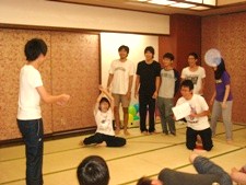 【3日目 スポーツ編】 さあ次はスポーツ企画です!! 今年はドッジボールとバレーボールでした! 今回のドッジボールはいつもと違ってボールを2個同時に使用する特別ルールが採用されたのでとてもスピーディーな試合展開になりました。 先生もOBの方も童心に返って本気の試合が行われました。 各チーム数試合戦った後、今年の目玉6期vs7期の試合が行われました。 絶対に負けられない戦いがそこにはある・・・。 プライドとプライドがぶつかり合う本当の戦いがそこにはありました。 当てられる才能はピカイチ清水。 策士柴田さん。 ドッジ弾平縄田さん。 逆襲の氏田。 結果は・・・6期の貫禄勝ちでした!! さすがです。 来年8期は覚悟しといてください(笑)。 ここまででかなりの体力を消費した小野ゼミ生ですが、小野ゼミのスポーツ企画はそんなに甘くありません。 立て続けにバレーボールが始まりました。 どのチームもドッジボールで打ち解けたのか、点を取るたびに歓声とハイタッチが見られました。 決勝戦は特に大盛り上がりで、サーブの度にみなが掛け声をして盛り上がるなど小野ゼミの団結力を見せつけていました! 優勝はよしひろさん率いるB班でした!おめでとうございます!! P.S.スポーツ企画後にこっそりとフットサル6期vs7期が行われました。 果たしてその結果はいかに!!?? (日浦) 【3日目 コンパ編】 スポーツで汗をかいた後は、待ちに待った今合宿のメインコンパです!! この日のコンパのために体力を温存していた人も多かったのではないでしょうか。 まず、コンパ係による楽しい楽しいゲームから始まりました。 6チームに分かれ、ジェスチャーゲームや風船運びゲームで戦いました。 ジェスチャーゲームでは清水君の福山雅治が見られなくて残念でしたが、柴田さんのカンガルーなど一人一人の個性が光っていてとても面白かったですね!! ゲームにはふみ君や小野先生の奥様にも参加していただき、みんなで楽しい時間を共有することができました!! さらに、この夏合宿中に結婚記念日を迎えられた小野先生と奥様へゼミ生から記念品を贈呈させていただきました!! こうしてメインコンパは2日目以上に盛り上がり、この日もみんなで朝まで楽しみました!! 小野ゼミ全体の仲がより深まりましたね!! (澤井) |