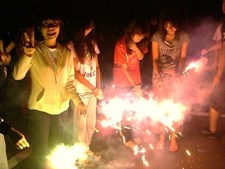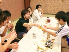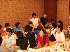 【2日目 エンジョイ編】 ケース発表、論文発表が終わり、いよいよコンパです!!…とその前に、次の日の雨を心配して急遽3日目に予定されていた花火をすることに!! 「この夏は 一度きりだね そう言って 思いをはせる 線香花火」 (by 菊盛) こんな句をうたってしまいたくなるほどきれいでした! それまでの疲れもどこかへ飛んで、みんな童心にかえって楽しみました。 花火で心が癒された後は、ついにコンパの時間です!! みんなケース発表、論文発表の緊張感から解放され、思いっきり楽しみました。 小野先生や普段なかなか触れる機会のないOBの方々との話を楽しんだり、お酒を楽しんだりと、それまでの疲れを感じさせないほどの盛り上がりでした!! しかし、さすがにケースで徹夜明けの7期生の顔には疲れが見られ、3日目に予定されている今合宿のメインコンパに備えて1人、1人とコンパ会場から消えていきました。 残ったゼミ生たちは寝るのも忘れ、朝まで飲み会を楽しみました!! (澤井) |