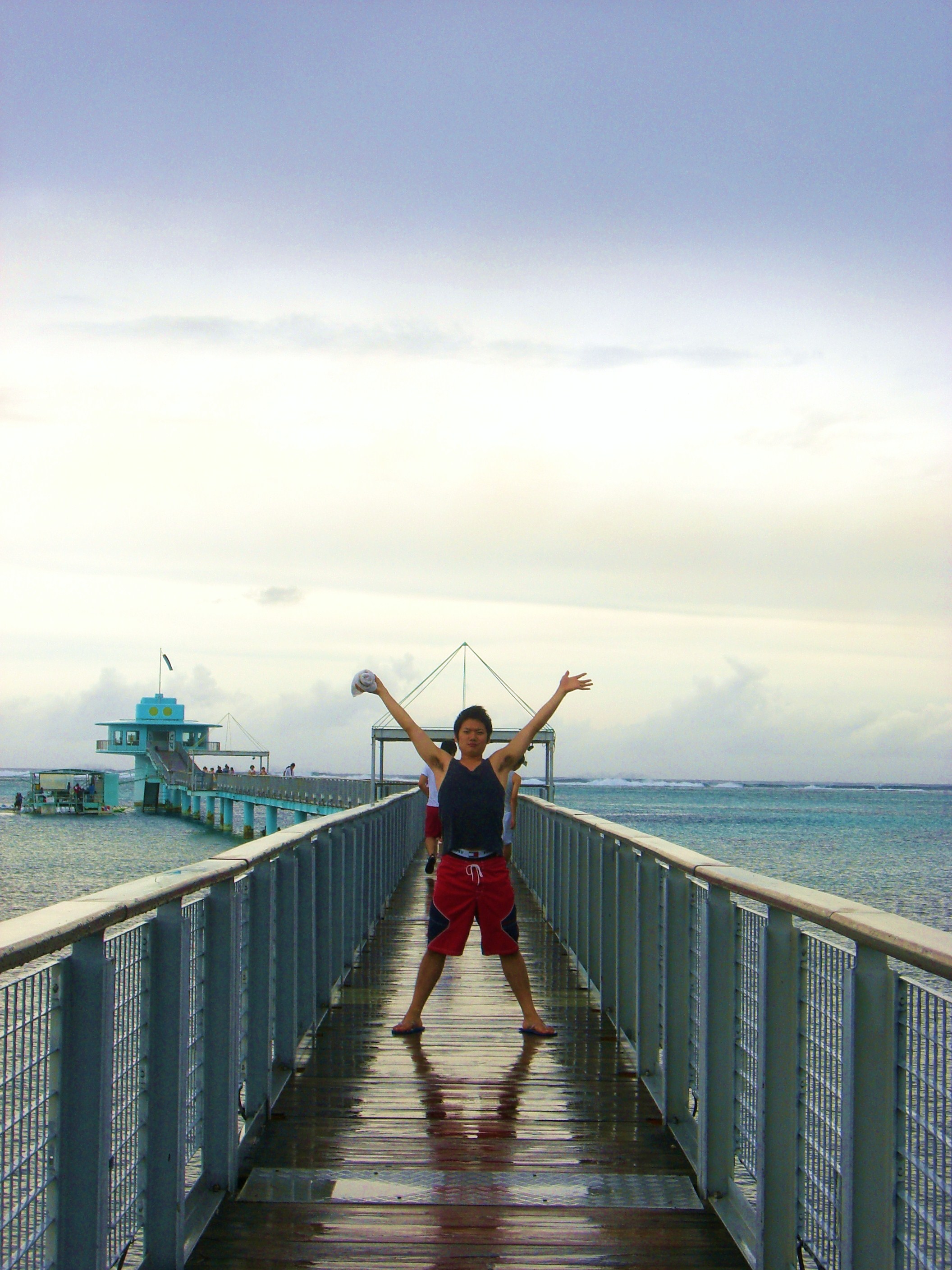 【3日目】 3日目の班長は我らがゼミ長氏田である。 しかしながら、この日は朝寝坊者が出たため行動開始は12時近くとなってしまった。 しかしながら、氏田は持ち前のあの強引なリーダーシップで全員をぐいぐい引っ張り、彼が当初からやりたいと騒いでいたマリンスポーツのシーウォーカーというものにメンバー全員を参加させた。このシーウォーカーの当日申し込みが可能ということは情報家の松本がリサーチ済みであった。申し込んだあとは、腹が減っては海に潜れぬというわけで昼食にありついた。そこでの選択肢はアメリカの代名詞、そして学生の救世主、我らがマクドナルドである。また!ファーストフード。しかし、グアムのマクドナルドには日本にはないメニューばかりで、しかも味もなかなかのもの。この味を日本にも輸入してほしいものである。一同グアムのマックで腹を満たしたあとは、おまちかねのシーウォーカーである!シーウォーカーとはヘルメットをかぶって、海に潜り海底を歩くというもので、全員が初体験だった。海底から見上げる水面が非常に神秘的だったのが印象に残る。また手の届くところにたくさんのカラフルな魚が泳いでおり、とても楽しい体験をすることができた。そのあとは、シュノーケルやカヤックでグアムの海を思う存分満喫した。 最終日の夜は長かった。海から出て部屋で着替えを済ませた一行は、最後の晩餐に出かける。ファーストフード縛りがやっと解け、氏田ごり押しのチャモロ料理(グアムの現地料理)を食しにお店へ出かける。途中日浦の新品の真っ白な靴がぬかるみにはまり茶色に変色するというハプニングがあったものの(本人はガン萎えであった)、なんとかご飯にありつけた。最初はチャモロ料理に半信半疑だった私だが、今ではグアムの一押しだと思えるほどおいしかった。(ただ久しぶりにファーストフード以外のものを食べた感動からかは不明)ぜひこれを読んでる皆さんにもおすすめしたい。全員が料理に舌鼓を打ち、そのあとお土産を買いこんで、ホテルに戻った。しかしまだ夜は始まったばかり!このあと氏田の本日3度目の猛プッシュでクラブに向かうことに。この感想は直接本人たちに聞いてみてほしい。こうして最終日の夜は更けていった。明日のホテル出発は7時半。果たして起きることはできるのか?! |