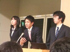 | 11月28日、日吉キャンパスJ11教室にて四分野インゼミ研究報告会が開かれた。 商学部内で異なる分野を研究している計6つのゼミが一堂に会し、各分野の研究報告を共有する報告会である 。産業経済、会計、経営など、各ゼミ各分野の新鮮な報告が進み、小野ゼミを代表して菊盛と氏田が園田ゼミ、岡本ゼミそれぞれのプレゼンに対して質問をする。 そしてついに運命の15:50。 小野ゼミのプレゼンが始まった。