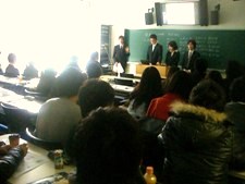 | 12月5日、早稲田大学にて関東10ゼミ討論会の発表会が行われた。この討論会は、関東の名門マーケティングゼミの学生たち (早稲田大学、立教大学、学習院大学など、関東圏の有名大学) が集まる会で、今年は「不況に打ち勝つマーケティング」をテーマに、耐久財、耐久消費財、無形財といった財の特性ごとに分かれ、研究を行った。 我々小野ゼミは「耐久財」のリーダーとしてこの会に参加した。今回参加したのは3年生4名、市村、小野、千葉、そしてリーダーの橋本により結成された10ゼミ論文プロジェクト・チームである。メンバー一同、チーム結成から約8ヶ月間、幾多の壁を一つひとつ乗り越えながら研究を行ってきた。5日はそんな思い入れのある研究のプレゼンテーション。否が応にも熱が入る。本番直前まで、小野先生や先輩方から貴重なアドバイスをいただき、修正を重ね、何度も何度も練習を行った。 そして迎えた当日。会場は、他大学のゼミ生や実務家の方、院生の方、小野ゼミの3、4年生、でいっぱいになっていた。他大学の斬新な切り口の発表に感心していると、我らが小野ゼミの出番となった。初めて見る方にも分かりやすく、そして楽しく、ということを意識したことが功を奏したのだろう。堅い雰囲気の漂っていた教室が、私たちのプレゼンが始まるとみるみる明るくなっていった。私たちが発表した研究は、「消費者心理から見る中古品の有効性―製品間差異に着目して―」 というテーマの論文であり、 発表を聞き終えた実務家、大学院生からは、「時代に合ったテーマで面白い」、「研究がしっかりとなされている」など、お褒めの言葉をいただいた。 また、他大学からの友人からも、「やっぱり小野ゼミさんはすごいよね。」などと評価してもらえた。10ゼミの魅力はこのように、他大学の人たちや実務家、大学院生から様々な刺激を受けながら学ぶことができ、さらに他大学の学生と切磋琢磨しあえることである。 最後になるが、私たちの力だけではこの論文は書くことはできなかった。参加して下さった他大学の皆さん、2年生の皆さん、ありがとうございます。そして、小野ゼミの6期7期の皆さん、院生のみなさん、そしていつも熱心なご指導を下さった小野先生、本当にありがとうございました。 来年も、この関東10ゼミ討論会は開催される予定である。他大学を巻き込んでのビッグプロジェクトの牽引役を、小野ゼミに入ろうとしている君たちが来年もなし遂げることを期待したい。 |