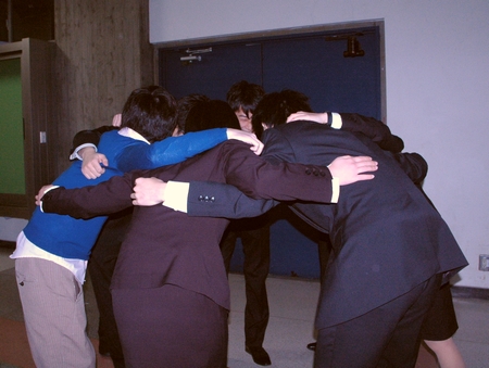 ある日のサブゼミの後、9期全員が一同に新南校舎7階に集結し、来たる三田祭論文プロジェクトのチーム編成について話し合いが行われた。 皆互いに様子をうかがいつつ、自らの希望を申告する。 結果、どこかで見たような顔ぶれが自然と集まった。 「最高の論文、最高のチームにしよう!」 と杯をかわし、この日マケ論は始動した。