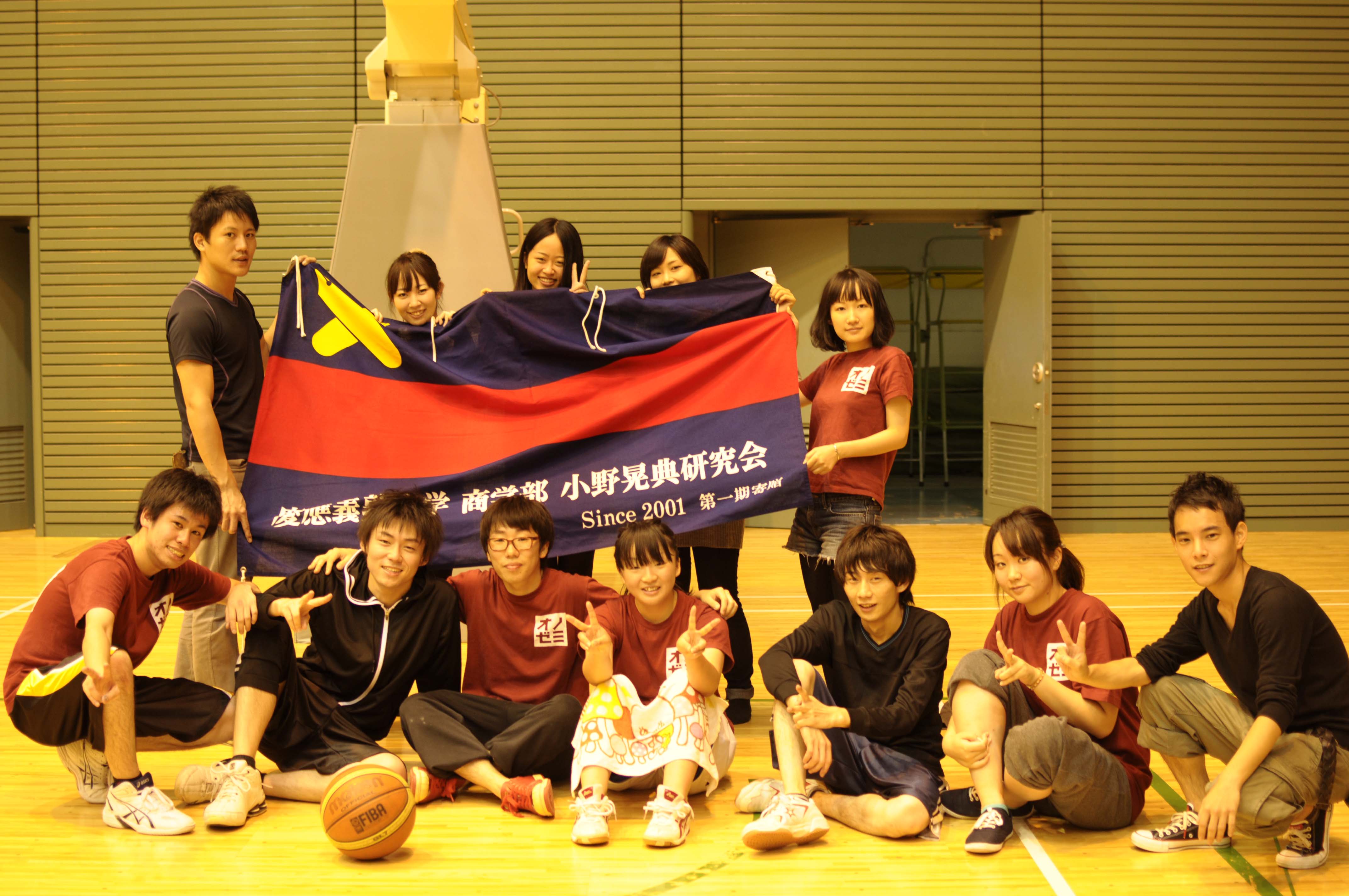 第1試合 対 金子ゼミ 第1試合では強豪金子ゼミとの戦い、元バスケ部の秋山君のシュートを含め2本を決めることができましたが 、バスケットプレーヤーと見られる人が多く存在する相手チームに対し、28対5の大差で負けてしまいました。 しかし、第1試合での経験を元に刎本君がリードしながらマンツーマン作戦で挑んだ中島ゼミとの2試合目、前半は絶好調! 天才シューター戸羽ちゃんのプレーがチームの動きを引き締め前半はリードしたまま折り返し。 後半は残念がら逆転されてしまいましたが、何人かのメンバーが前半・後半ともに休みないプレイで皆を盛り立てたり、最後にはリバウンドを渡邉君がとって菅原くんがシュートを決めるなどワンダフルなチームプレイができ、楽しいバスケットボール大会となりました。 小野ゼミ写真部 (黒澤くんと高木さん) と応援団のお陰で気持ちのいいプレイができました! スポーツの秋、ゼミ活動の他にこのようなイベントに参加することができ、とても有意義な時間が過ごせたと思います。 選手・応援団、お疲れ様でした。 来年はぜひバスケもソフトボールもいい結果がだせるようリベンジしたいですね!(清水) |