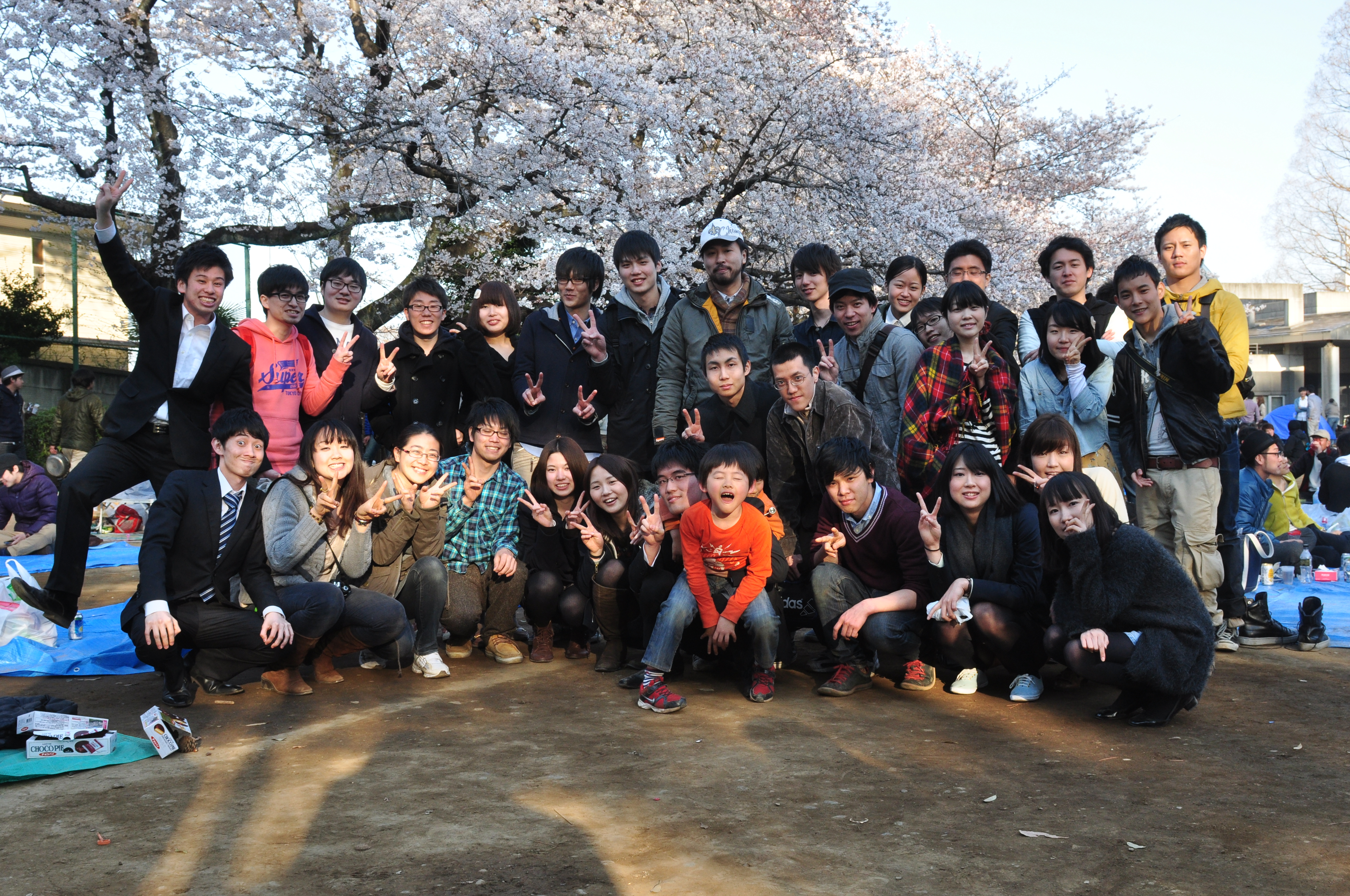 雲ひとつない日曜の昼下がり、たくさんの花見客でにぎわう多摩川台公園にて、小野ゼミ史上初となる花見企画はスタートしました。 公園内は満開の桜に彩られていたものの、ゼミ生はそんな桜よりも、渡邊君のおうちの方が差し入れてくださった豪華なお総菜、栗原さん&野澤さんによる鮮やかなサンドイッチ、軒名さんのお稲荷さん、第8期OB荻野さん、りんちゃん、ポニョ、そしてみっこによるお菓子等々、様々な食べ物ばかりに夢中になってた模様でした。 元々は数ヶ月前、「第10期生と交流したい。 そうだ、花見をしよう」 という第9期本務企画担当者による短絡的な思いつきから始まった、今回の企画。 就職活動・入社研修が本格化する中での決行でしたが、多くの9期生が就活の合間を縫ってスーツ姿で参上したり、大学院生で第5期OBの千葉さん、第7期OGの菊盛さんはもちろんのこと、8期OBの荻野前ゼミ長、黒沢さん、樋口さん、佐藤さん等、OBOGの方にも多くご参加いただきました。 本当にありがとうございます! そして最後に、当日朝早くから場所取りを手伝ってくれたゼミ生、そして、料理を持参してくれたゼミ生に拍手!! (渡邉)