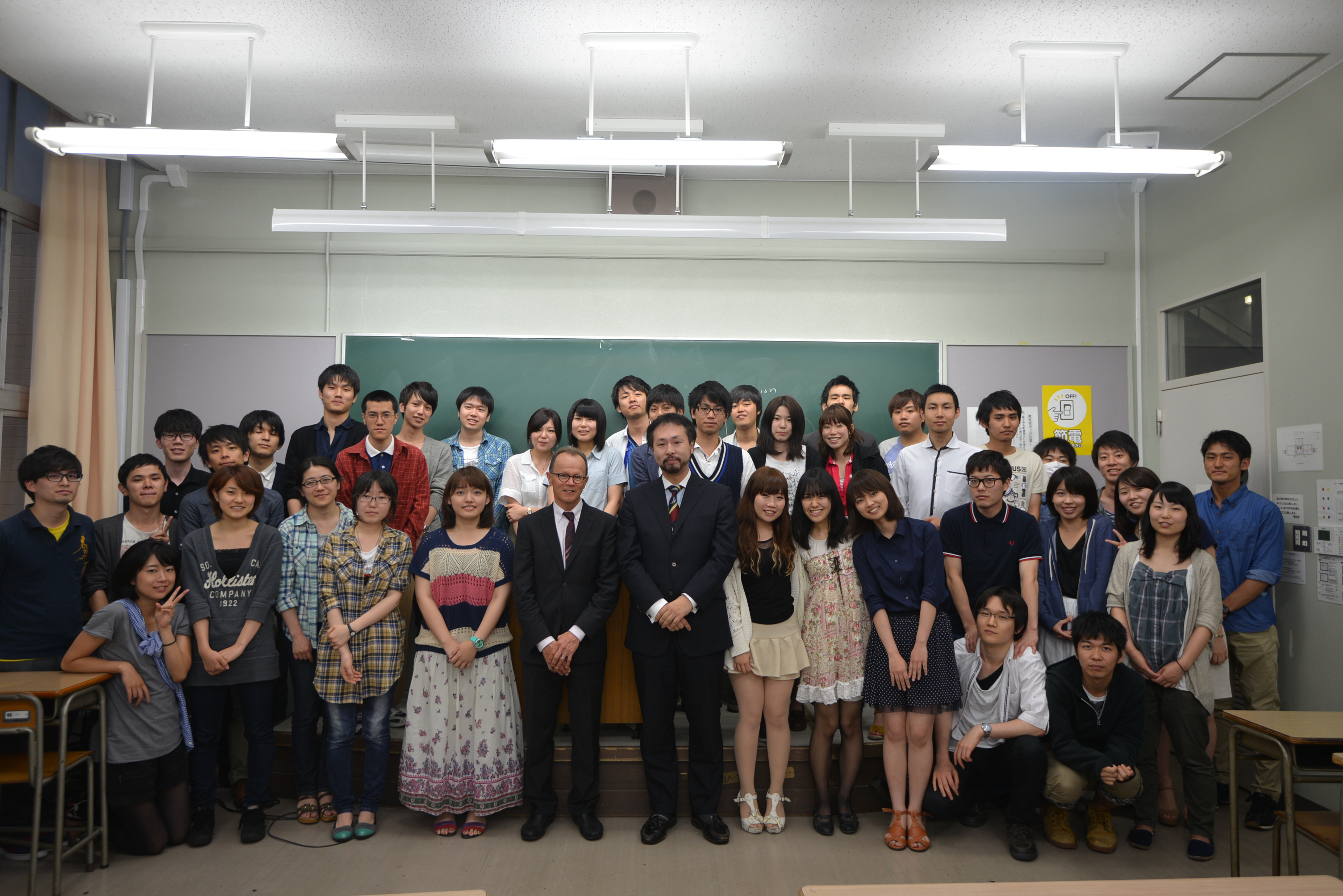 | 遂に小野ゼミにも海外からの大物が来日である。 高橋ゼミから招待していただき、サンノゼ・ステイト大学のゲート教授をお招きした、小野・高橋・高田ゼミの3ゼミの合同の講演会が始まった。 論文内容は高橋教授・マイケル教授との共同研究であり、日本人の我々に分かり易いようにゆっくり話してくれた。 最後の質問時間で私も拙い英語ながらも質問すると、懇切丁寧に答えてくれた。 短い交流時間ながらも話すだけで温かい人柄も感じ、深い尊敬の念を覚えた。 来ていただいたゲート教授とこの機会を作ってくれた高橋郁夫教授にこの場を借りてお礼を申し上げたい。 (伊礼) |