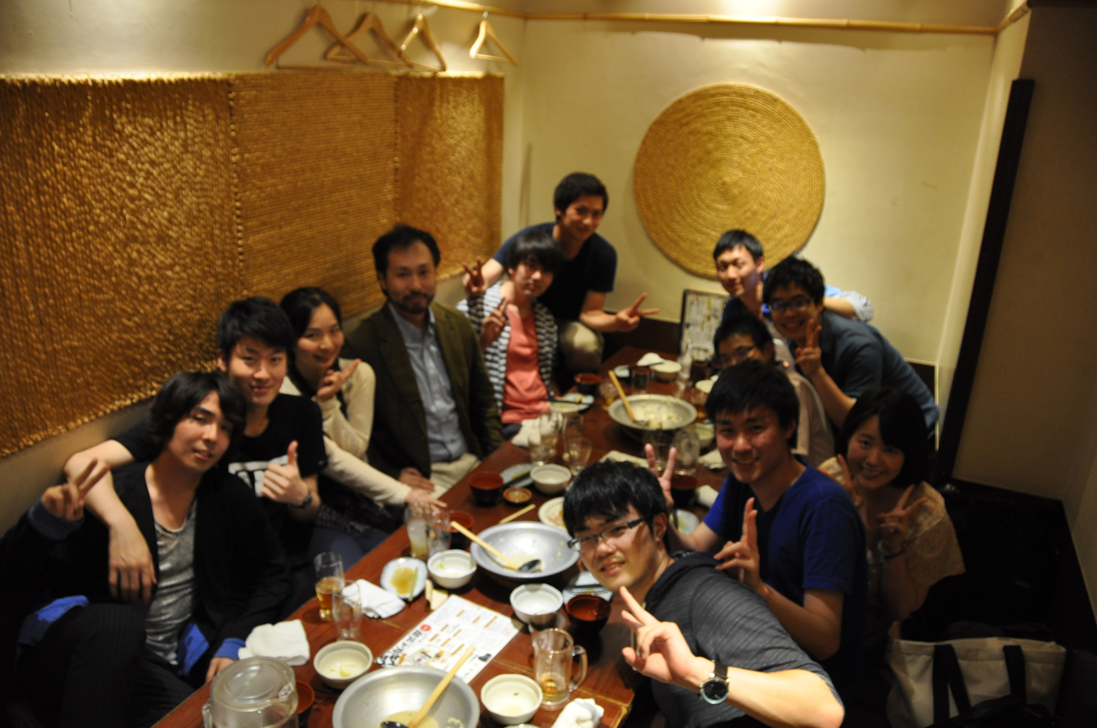 飲み会が終わった後は、その日の話題の中心であった清水君に一本締めをしてもらいました。 清水君は、色々と頑張ってください!笑 去年に増して盛り上がり、笑顔の絶えない本当に楽しい飲み会で、2時間では物足りないくらいでした。 お忙しい中、足を運んでいただいた小野先生、本当にありがとうございました。 13期生もあと半年で卒業(予定)ですので、それまでにまたこのような場を設けたいですね! (小黒) |