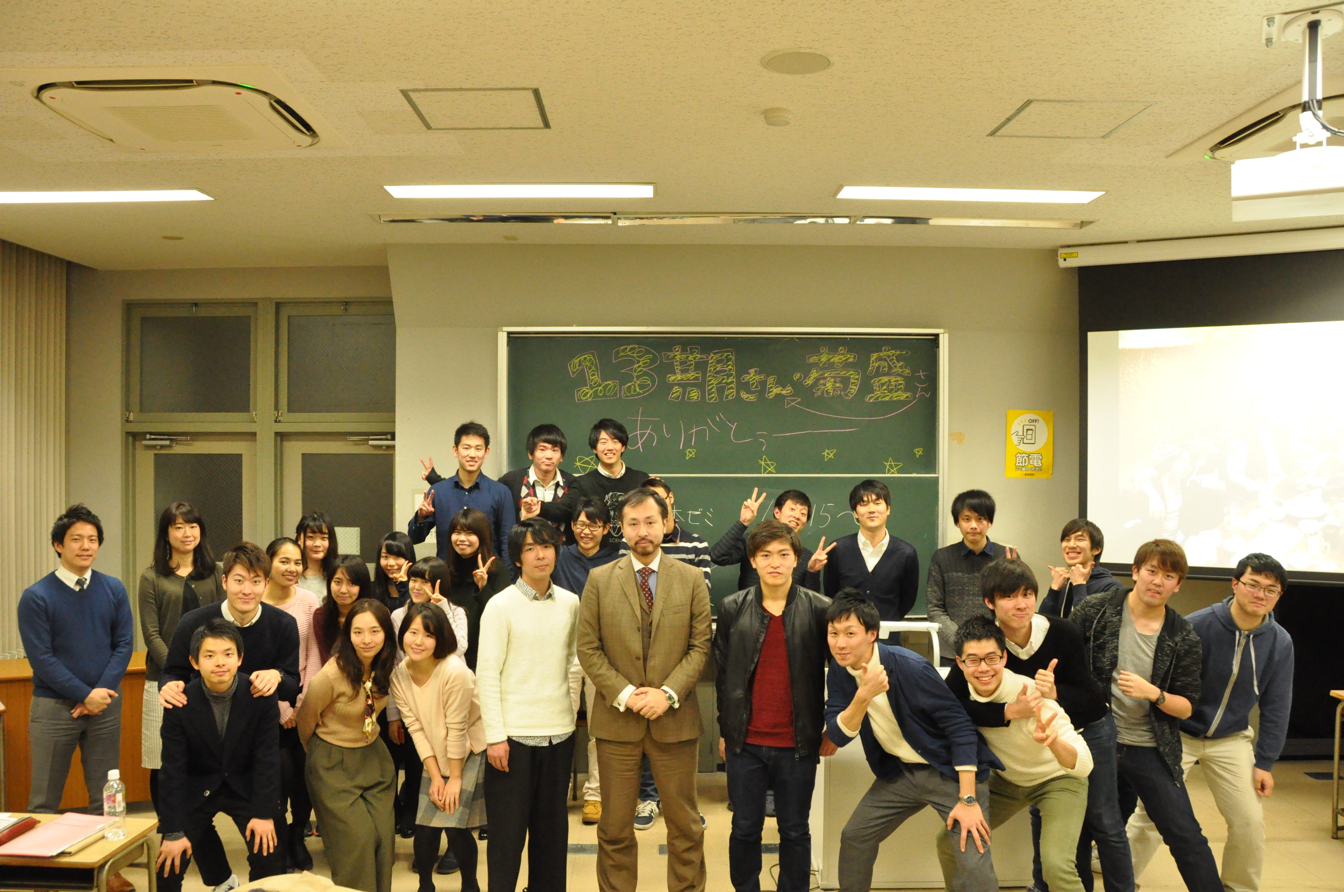 本ゼミの後は、後期納会。 場所は恒例のつるの屋。 乾杯を引き受けてくださった菊盛さん、ありがとうございました。 第13期の先輩方との最後の飲み会だと思うと、寂しい気持ちになりました。 思えばこの一年、本当にお世話になりました。 第13期の先輩方が大好きです。 お忙しい中、OBの横山さん、松山さん、岩崎さん、荻野さん、野沢さんがお越し下さいました。 盛り上げてくださって本当にありがとうございました。 最後の納会の中締めを、小黒さんにお願いしました。 ゼミ長として、ゼミを引っ張ってくださった小黒さんのお言葉は心に残るものでした。 なにより、小野ゼミだけでなく、つるのや全体が感動につつまれ、拍手大喝采が沸き起こったのが、とても印象的で、最高の中締めだったと思います。 私事ながら、本務企画としてのゼミの公式飲み会の幹事も、3月15日の入ゼミ試験後の1つを残すのみとなりました。 はじめは右も左もわからず、手こずっていた私ですが、今回、先代の矢野さんに、「飲み会上手くなったね」 とのお言葉を頂き、本当に嬉しかったです。 先輩方に安心して小野ゼミを巣立って頂けるよう、まだ見ぬ第15期に尊敬してもらえるよう、これからも成長していきたいと思います。 後期納会を無事終え、小野先生にお礼をいうことができてよかったです。 先生、今年一年間本当にお世話になりました。 今後も小野ゼミを楽しみながら頑張ります。 (江黒) |