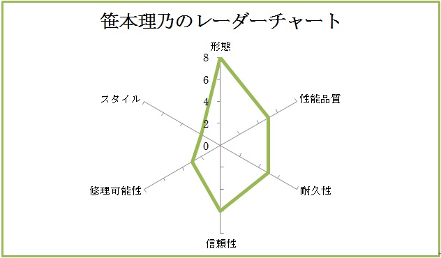 | 形態: 性能品質: 耐久性: 信頼性: 修理可能性: スタイル: 代替品: 補完品: |