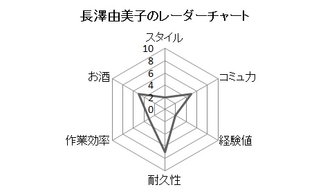 | スタイル: コミュ力: 経験値: 耐久性: 作業効率: お酒: |