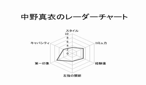 | スタイル: コミュ力: 経験値: 左指の関節: 第一印象: キャパシティ: |